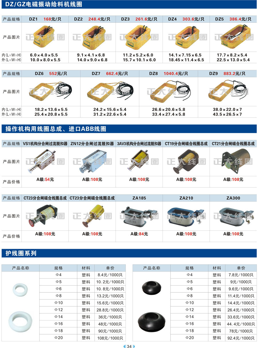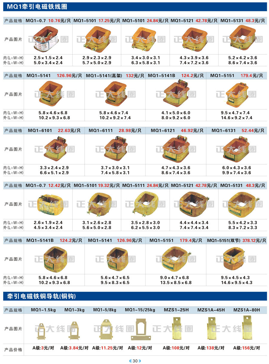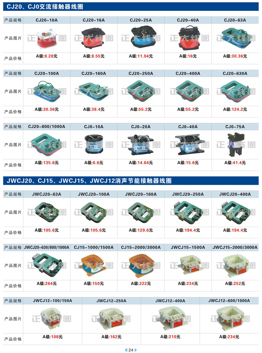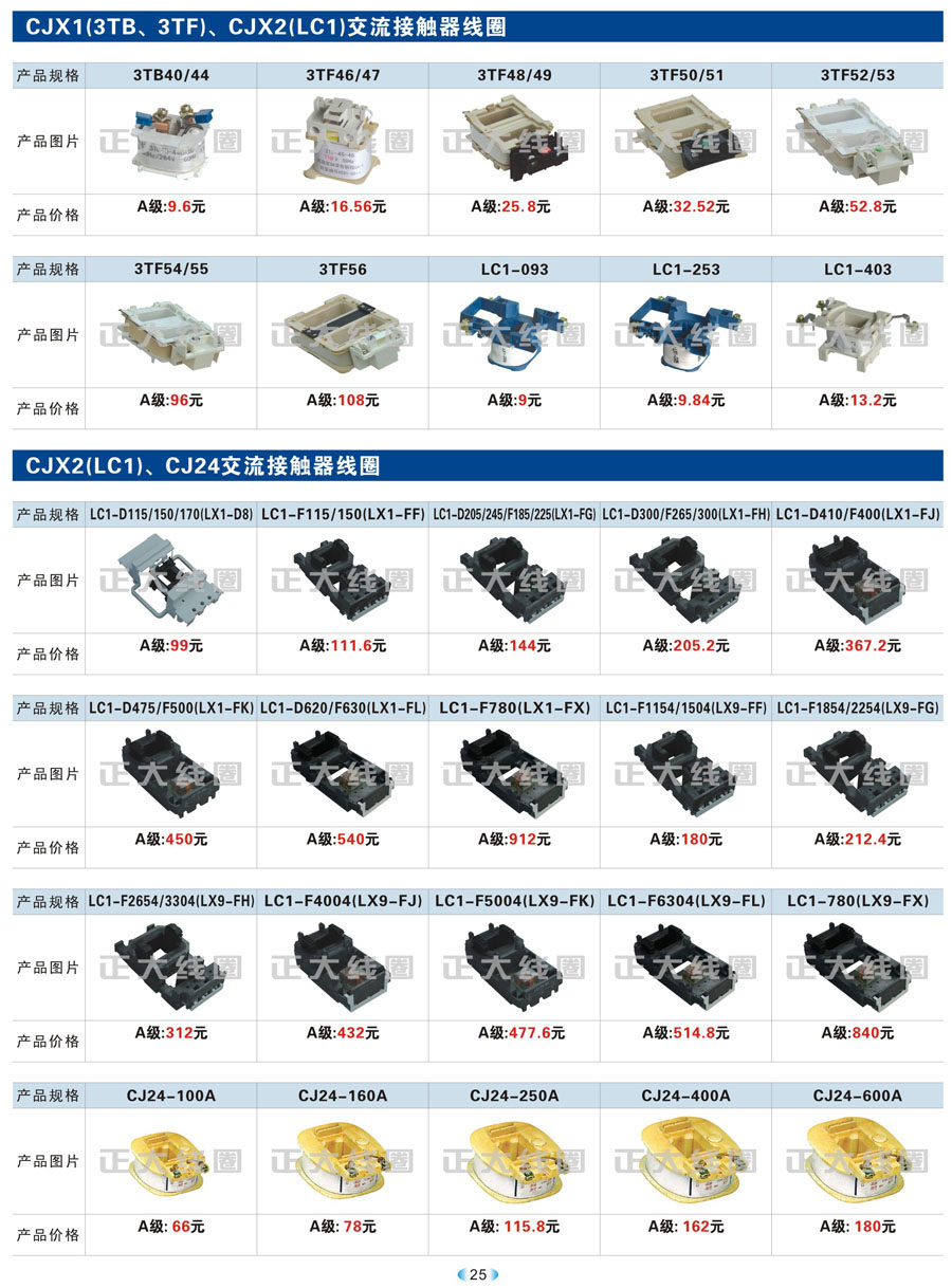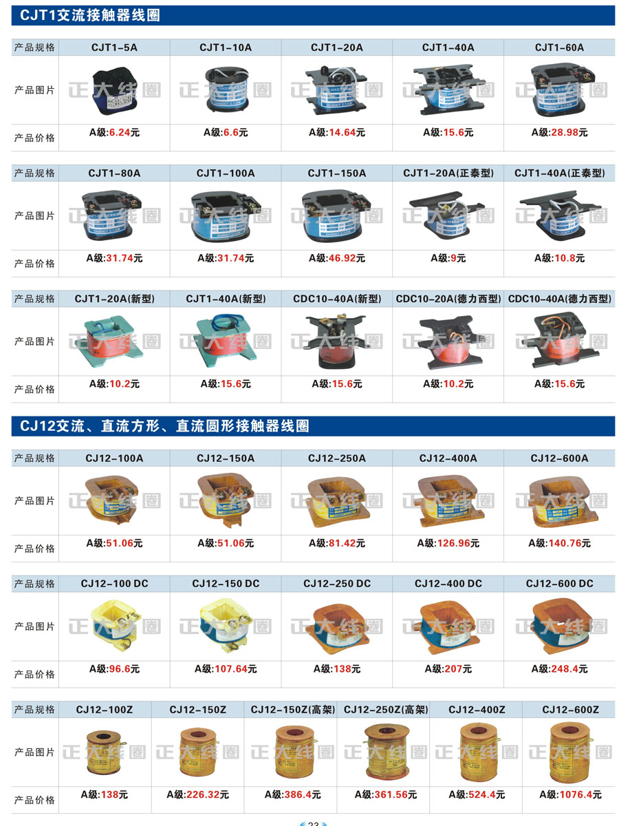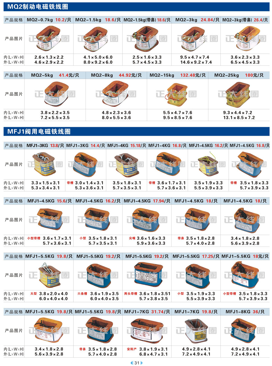 1.1 线圈作为频繁接通和切断电动机或其它负载主电路的切换电器,主要应用于接触器、继电器、操作机构、电磁铁等开关。我公司现生产CJT1、CJ12、CJ20、CJ15、3TB、3TF、LC1、CKJ5、MZD1、MZS1、MQ1、MQ2、MFJ1、MZZ1、ZDZ1、YCT、DZ系列等线圈,目前是线圈同行业领先企业。